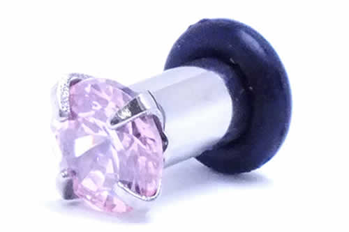 [ 6G ボディーピアス ジルコニア シングルフレア ] ジュエルフレア 6ゲージ 6Ga サージカルステンレス316L ボディピアス ゴムキャッチ ホールピアス メンズ レディース キュービックジルコニア クリスタル ピンク ラインストーン 結婚式 パーティ 立爪 タテ爪 立て爪