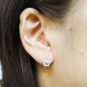 4月誕生石ダイヤモンドを使用したプラチナ製の、フラワー(花)モチーフピアスです。